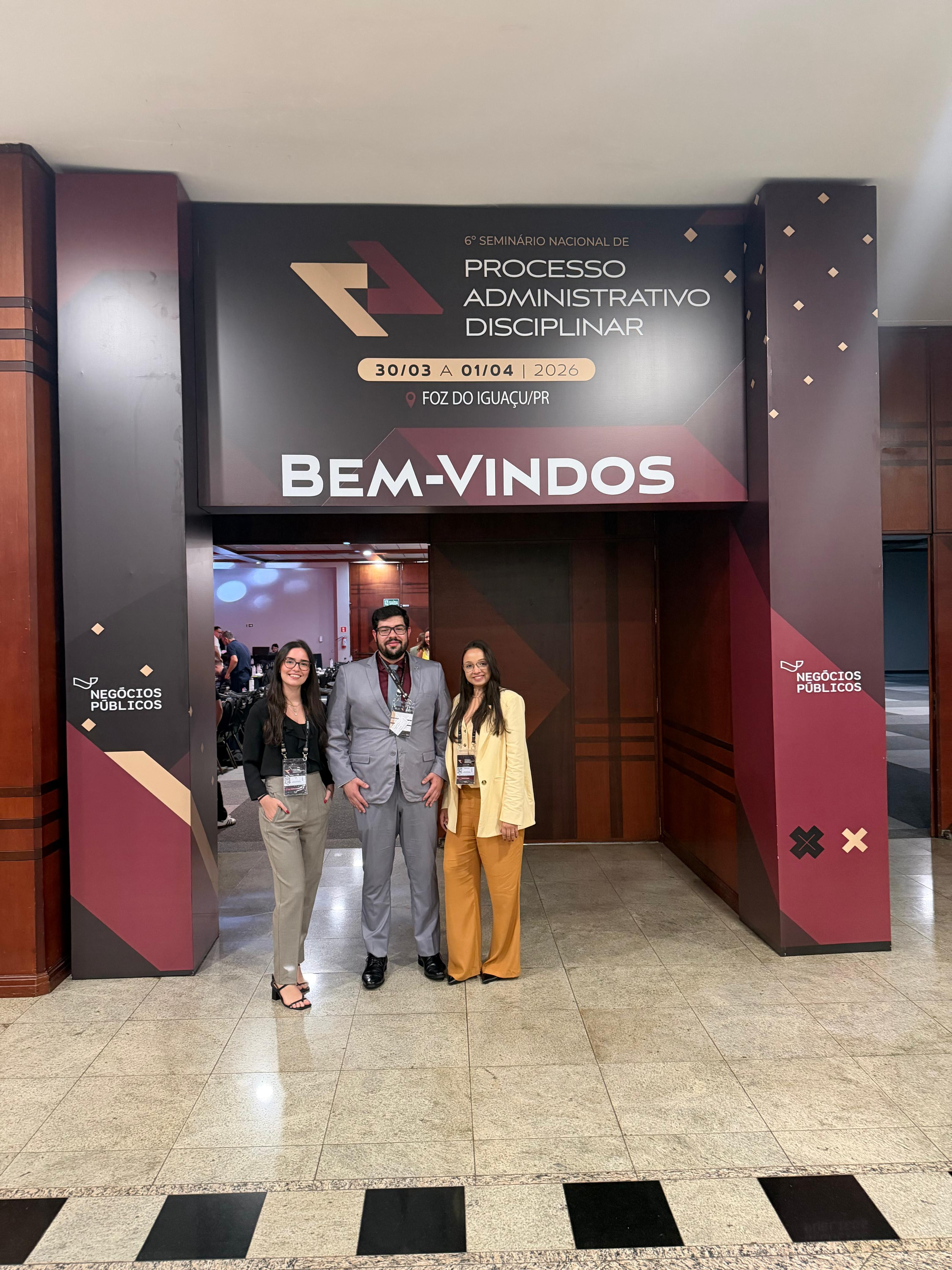 A chefe do Departamento Jurídico do Core-ES, Lara Bastos, o chefe de Dívida Ativa, Gleydson Costa, e a chefe do Atendimento, Débora Dias, estão no 6º Seminário Nacional de Processo Administrativo Disciplinar, em Foz do Iguaçu, que acontece entre os dias 30 de março e 1º de abril.