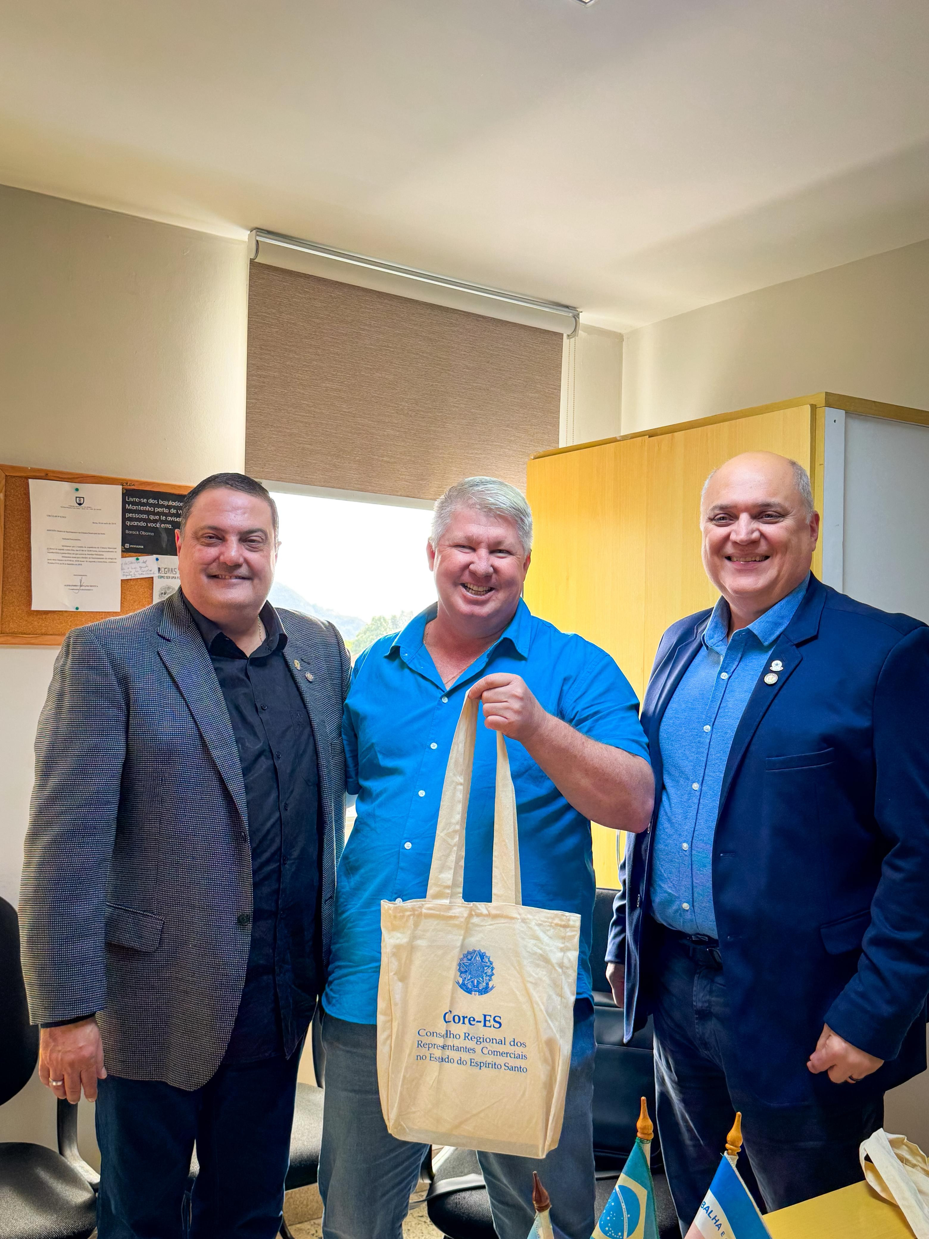 Seguindo o compromisso de manter uma agenda institucional ativa, buscando sempre avanços para os profissionais da representação comercial, o Diretor-Presidente do Core-ES, Marcelo Simonetti, o Diretor-Tesoureiro, José Maria Claudio Junior, e a Gerente Geral, Fernanda Pianca, estiveram no gabinete do vereador Wellington Alemão, na Câmara Municipal da Serra, na manhã desta terça-feira, 17.