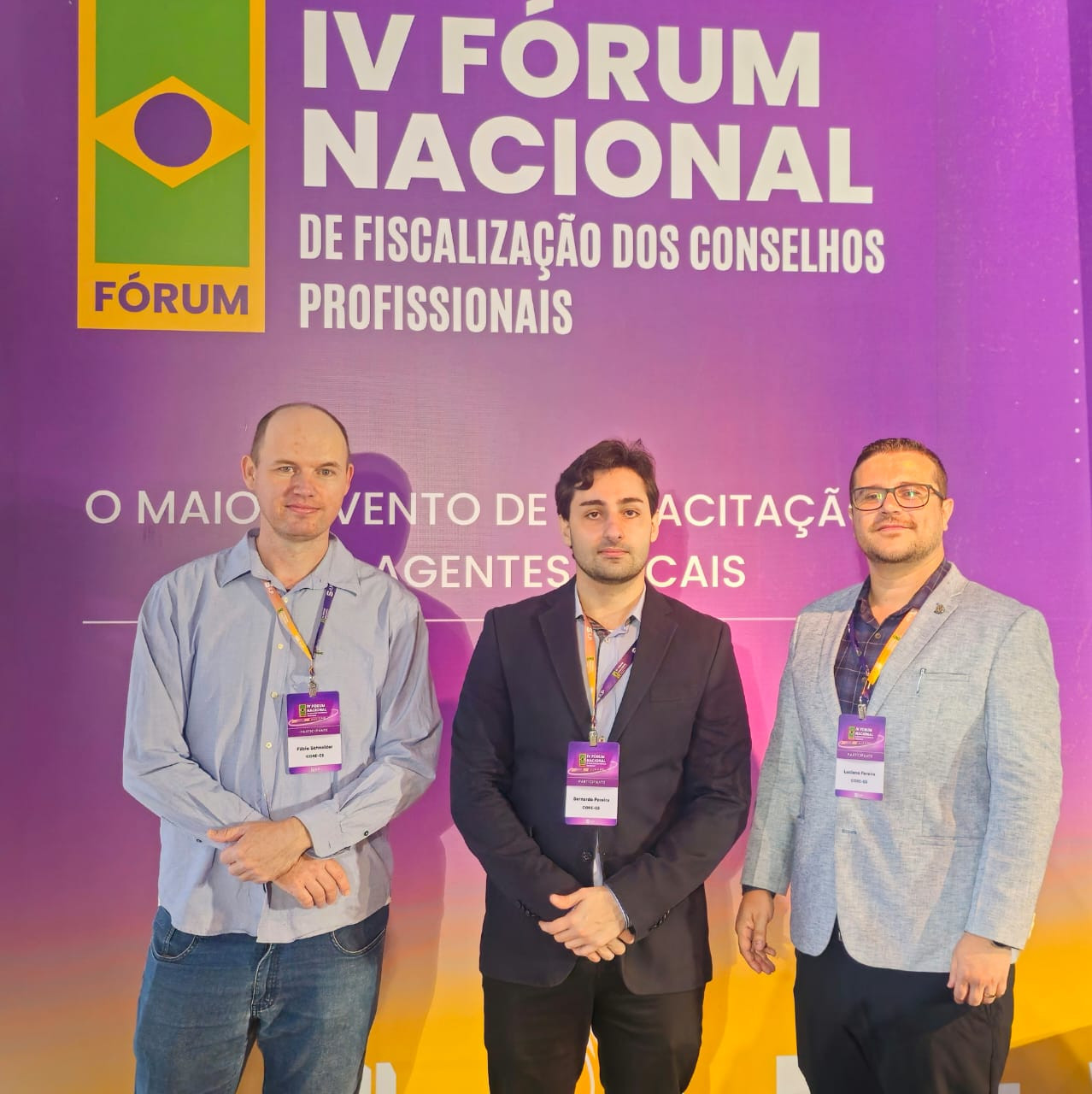O Core-ES participa do IV Fórum Nacional de Fiscalização dos Conselhos Profissionais representado pelo chefe do setor fiscal Bernardo Pereira, pelo fiscal Fabio Schneider e pelo assessor da presidência, Luciano Nunes, entre os dias 14 e 16 de maio.