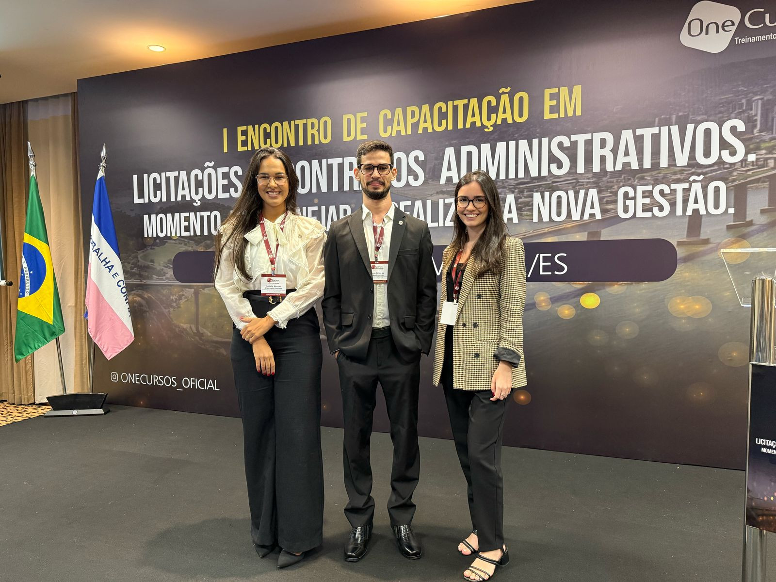 A Chefe do Departamento Jurídico do Core-ES, Lara Bastos, o assessor jurídico, Alécio Firmo de Holanda Júnior, e a assistente jurídico, Isabella Vervloet, participam do I Encontro de Capacitação em Licitações e Contratos Administrativos, que acontece entre os dias 28 e 30 de abril.